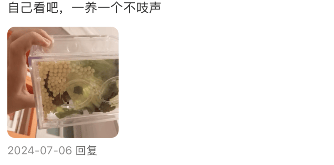 但对更多人来说:“本来带着好心情准备好好做饭,洗菜洗出软体动物,难免产生心理阴影。”