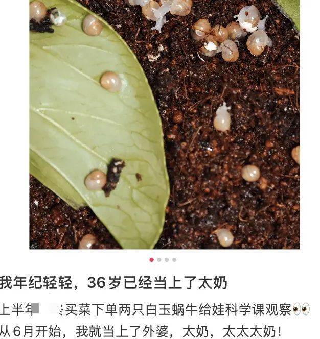 有人为了自家孩子自然科学课,在买菜平台下单白玉蜗牛,小蜗牛的出生让她很快成为“太奶”。