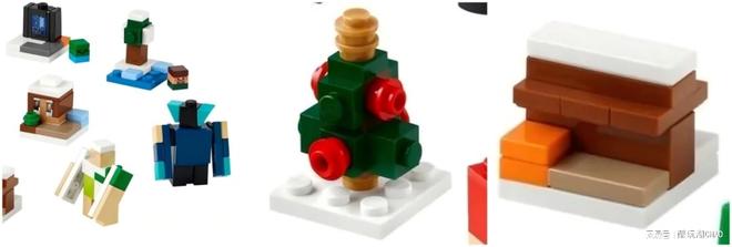 2025 年,乐高推出了首款我的世界主题倒数日历,其中也包含了一些微观世界式的小场景,例如圣诞树、小型村庄建筑、针叶林生态区、下界传送门,以及首次出现的铁傀儡和监守者微型模型。
